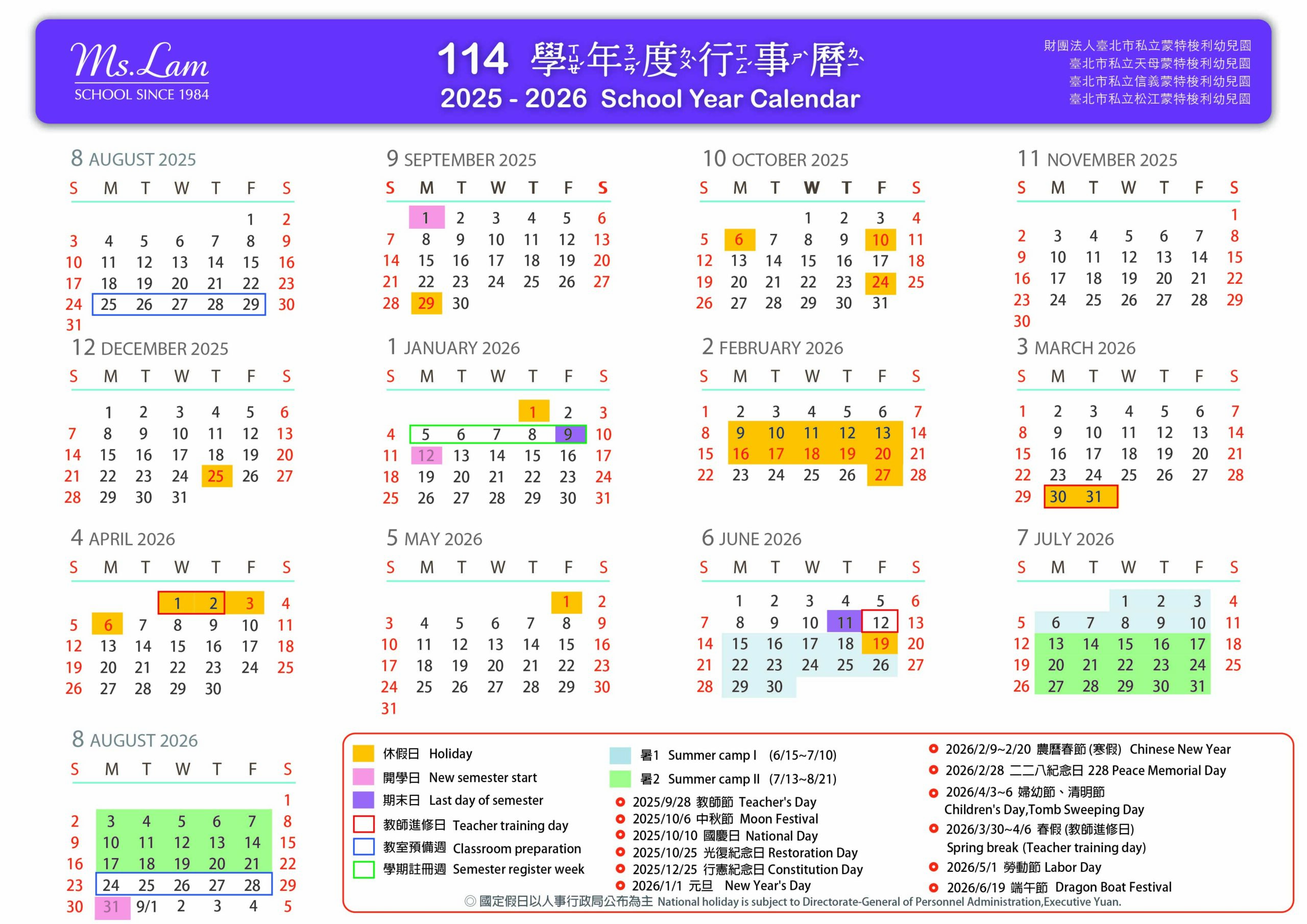 Ms. Lam School 113學年度行事曆